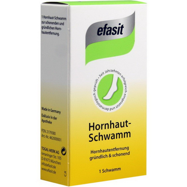 efasit Hornhaut-Schwamm – aus der efasit Pflegeserie für schöne, zarte und wohlriechende Füße – entfernt Hornhaut gründlich und schonend.