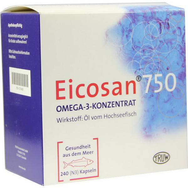 Omega-3-Fettsäuren sind essentielle Stoffe, die der Körper nicht selbst produzieren kann. Mit der bei uns üblichen Ernährung nehmen Menschen viel zu wenig Omega-3-Fettsäuren auf. Eicosan 750 liefert konzentriert Omega-3-Fettsäuren und trägt damit zur Erhaltung des körperlichen und geistigen Wohlbefindens in jedem Alter bei.