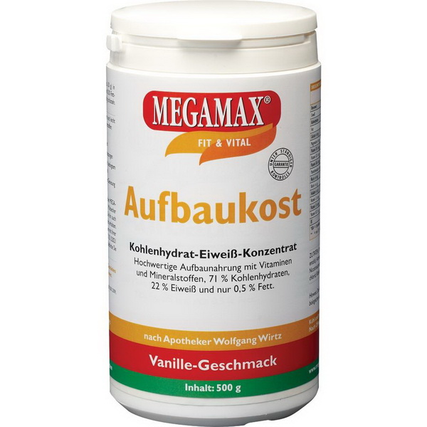 Aufbaukost (eng. = Weight Gainer) von MEGAMAX ist ein Kohlenhydrat-Eiweiß-Konzentrat zur Nahrungsergänzung für Personen, die eine Gewichtszunahme anstreben. Aber auch Sportler, die durch sportliche Betätigung gegen ihren Willen an Gewicht verlieren, können dies mit Weight Gainer von MEGAMAX verhindern. Weight Gainer von MEGAMAX unterscheidet sich von den meisten herkömmlichen Weight Gainern, denn das Produkt ist frei von Haushaltszucker und frei von kollagenem Eiweiß.