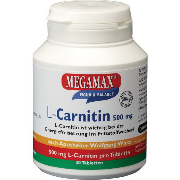 L-Carnitin kommt im Muskelfleisch vor und wird dem Körper bei der täglichen Ernährung mit fleischhaltiger Nahrung zugeführt. Pflanzliche Nahrungsquellen liefern praktisch kein L-Carnitin. Die MEGAMAX L-Carnitin à 500 mg Tabletten enthalten das Carnipuretm, welches aus reinem L-Carnitin besteht. LCarnitin ist eine chemische Verbindung aus den beiden Aminosäuren Methionin und Lysin. Ernähren Sie sich mit einer gemischten Kost, nehmen Sie täglich etwa 100 und 300 mg der Substanz auf. Unter den richtigen Bedingungen kann Ihr Körper den Stoff auch selbst herstellen. Bei einer vegetarischen Ernährungsweise können Sie kaum L-Carnitin aufnehmen, da es hauptsächlich in Fleisch vorkommt. Die MEGAMAX L-Carnitin à 500 mg und 1.000 mg Tabletten enthalten die Substanz Carnipuretm, welches ein L-Carnitin in reinster Form liefert. Dieses wird durch ein spezielles, patentiertes Herstellungsverfahren produziert. Im menschlichen Körper kommt dem L-Carnitin die physiologische Bedeutung eines Transportstoffes zu. Körpereigenes L-Carnitin transportiert die Fettsäuren in die Muskelzellen, in denen die Fettsäuren zur Energiegewinnung verbrannt (oxidiert) werden.