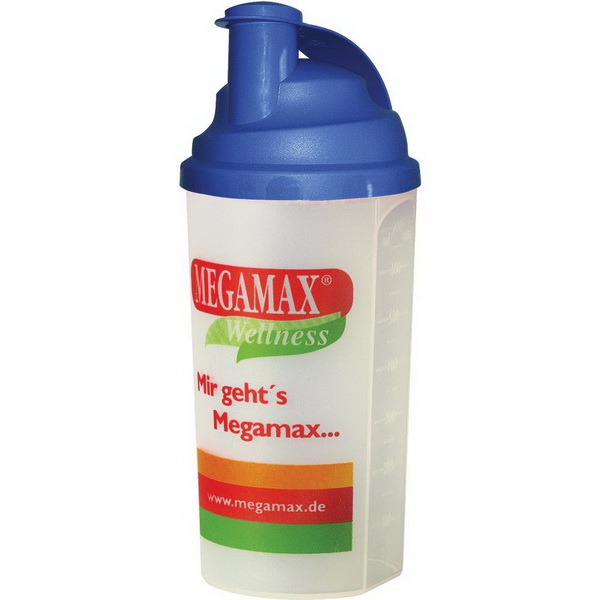 Am einfachsten gelingt die Zubereitung in den praktischen MEGAMAX Mixbechern mit Messskala und Siebeinsatz. Einfach Wasser oder Milch einfüllen, Pulver dazugeben und kräftig schütteln.