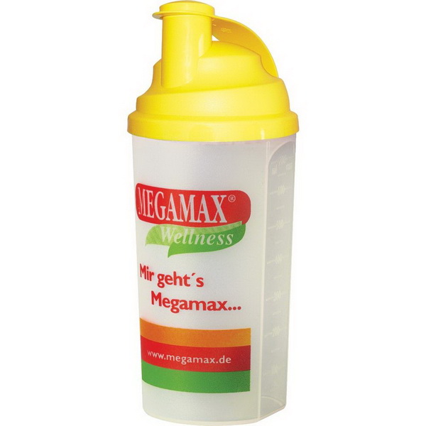 Am einfachsten gelingt die Zubereitung in den praktischen MEGAMAX Mixbechern mit Messskala und Siebeinsatz. Einfach Wasser oder Milch einfüllen, Pulver dazugeben und kräftig schütteln.