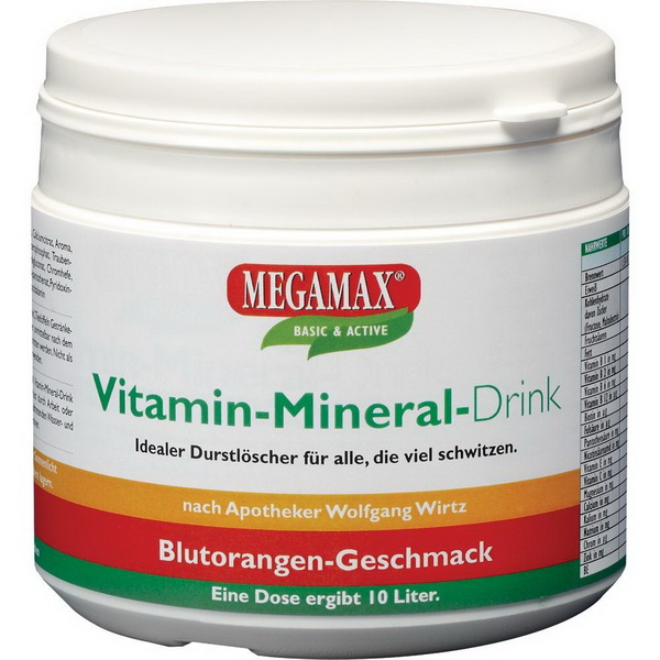 Nahrungsergänzungsmittel. Pulver zur Zubereitung eines kalorienreduzierten vitamin- und mineralstoffhaltigen Getränkes auf Wasserbasis zur Nahrungsergänzung, insbesondere bei Schweißverlusten z. B. im Sport. Mit Fruchtzucker, Stärke und Süßungsmittel Sucralose und Aspartam (enthält eine Phenylalaninquelle.)