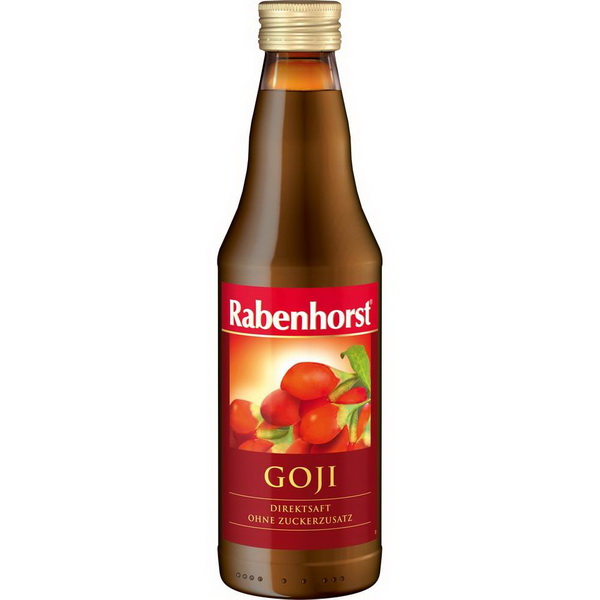 Exotische Gojibeeren werden nach der Ernte direkt im Herkunftsland zu einem hochwertigen Gojisaft verarbeitet und bei Rabenhorst schonend abgefüllt. Seit Jahrzehnten werden Gojibeeren im nordasiatischen Raum in Form von Trockenbeeren oder Saft verzehrt. Da Gojisaft gegenüber Oxidation sehr empfindlich ist, werden diesem zur Erhaltung seiner wertvollen Bestandteile Ascorbin und Zitronensäure hinzugefügt.