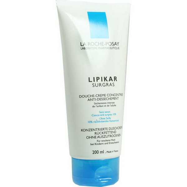 LIPIKAR Surgras Konzentrierte Duschcreme mit Thermalwasser aus La Roche-Posay enthält 10 % rückfettendes Konzentrat und Niacinamid um bereits beim Duschen, den Wiederaufbau der Hautbarriere zu unterstützen und rückfettend zu wirken. Ohne Parabene. Ohne Seife.