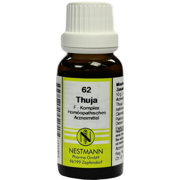 Arzneilich wirksame Bestandteile: Thuja Dil. D3 1,00 g; Arsenum jodatum Dil. D6 1,00 g; Aurum chloratum natronatum Dil. D4 1,00 g; Ambra Dil. D4 1,00 g; Bromum Dil. D4 1,00 g; Clematis Dil. D3 1,00 g; Hamamelis Dil. D2 1,00 g; Hydrastis Dil. D4 1,00 g; Platinum chloratum Dil. D6 1,00 g; Senega Dil. D4 1,00 g.