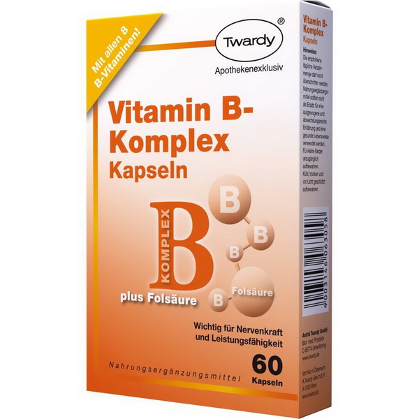 Vitamin B-Komplex Kapseln enthalten eine Kombination aller B-Vitamine mit dem Extra-Plus an Folsäure. Die Vitamine der B-Gruppe gehören zu den wasserlöslichen Vitaminen. Einige B-Vitamine sind für den Energie- und Eiweißstoffwechsel von entscheidender Bedeutung. Auch die normale Funktion des Nervensystems ist auf eine ausreichende Versorgung mit bestimmten B-Vitaminen angewiesen. Folsäure übernimmt wichtige Funktionen bei der Immunabwehr und Blutbildung.