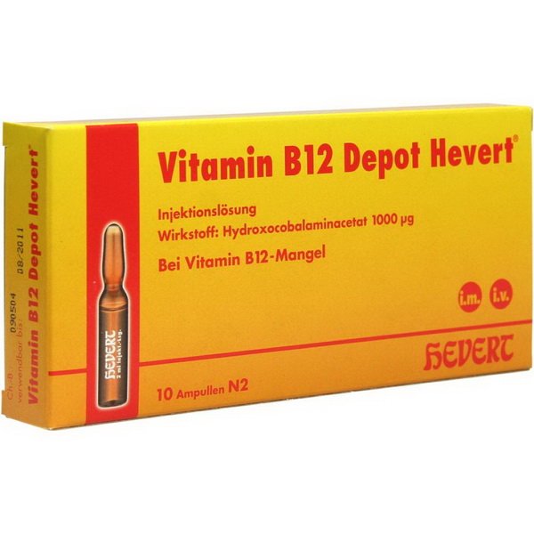 Soweit nicht anders verordnet wird zu Beginn der Behandlung in den ersten Wochen nach Diagnosestellung 1 ml 'Vitamin B12 Depot Hevert' (entsprechend 500 µg Hydroxocobalaminacetat) 2mal pro Woche verabreicht. Bei nachgewiesener Vitamin B12-Aufnahmestörung im Darm werden anschließend 100 µg Hydroxocobalaminacetat 1mal im Monat verabreicht.