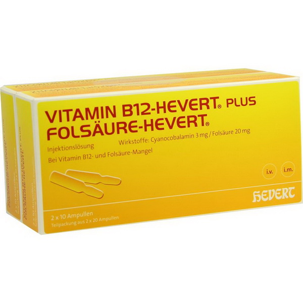 Sonstige Bestandteile: Vitamin B12-Hevert: Ammoniumsulfat,Natriumchlorid, Salzsäurelösung, Wasser für Injektionszwecke. ,Folsäure-Hevert: Natriumchlorid, Natriumhydroxidlösung, Wasser fürInjektionszwecke.